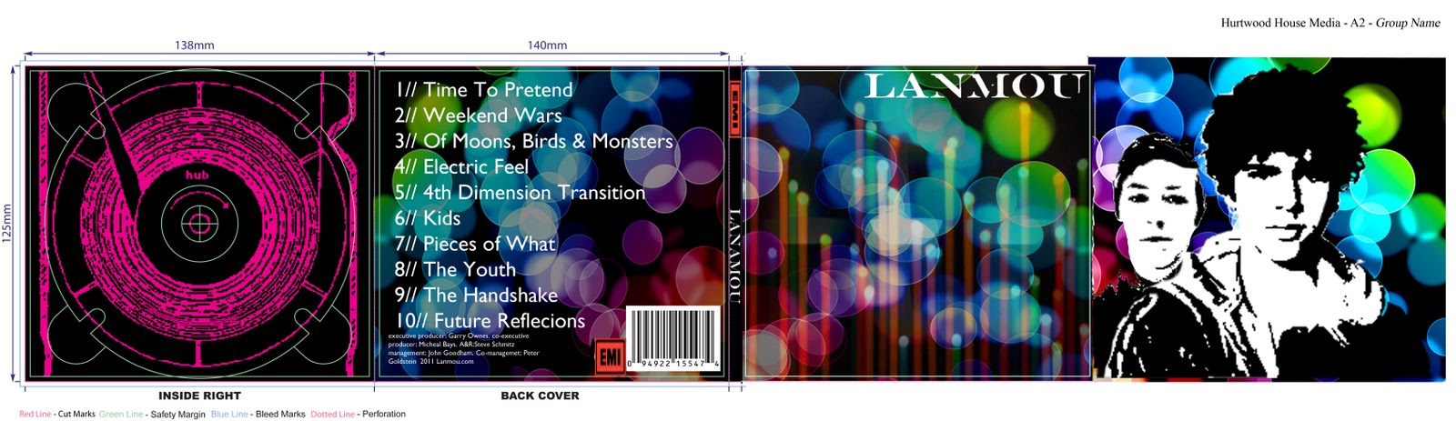 The Photoshop process was fun and incredibly creative, it allowed me to experiment and create a new media product. To create this digipak I critically evaluated our band image and attempted to recreate this in a campaign whilst trying to stick to conventions of alternative music. To create an image suitable for this I altered pre-existing photos by adapting the contrast and then blurred the blobs. I then using layers on Photoshop added a cut out of a Photo that I took to layer over the blurred balls. Thi slayering process would not have been possible without the Photoshop technique. It added a creative element to the process of production.